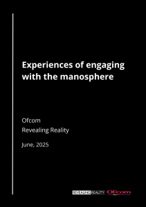 This report is part of Ofcom’s wider set of research activities that explore a range of experiences and views about the online environment. This research report sets out findings and themes from qualitative research with people who view, engage with or create content associated with the manosphere online. It explores their experiences, attitudes and media literacy.